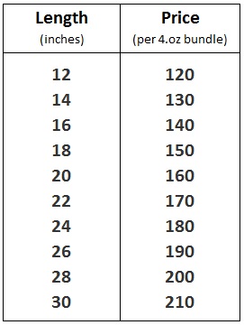Our machine weft bundles are appoximately 4 ounces each. Purchase by the ounce upon special request.